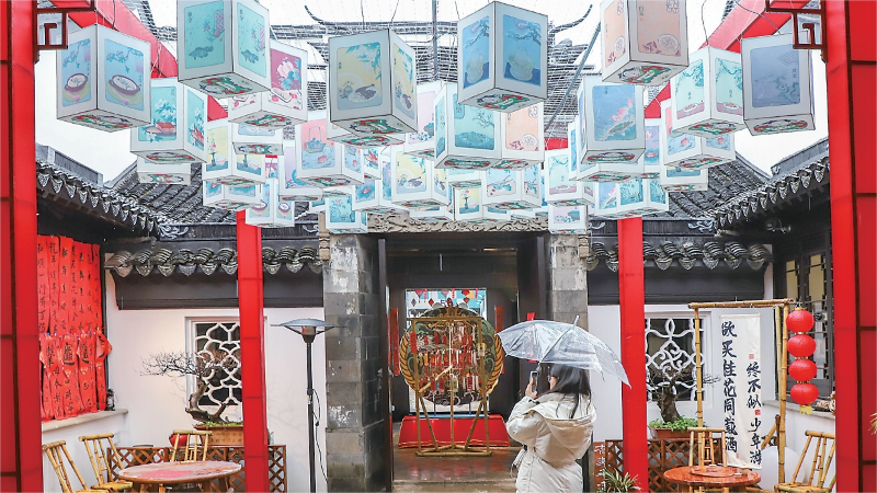 昨日(2月3日),不少市民游客纷纷来到平江文化中心,观赏桃花坞木刻年画和苏灯,感受非遗魅力,品味苏式年味。