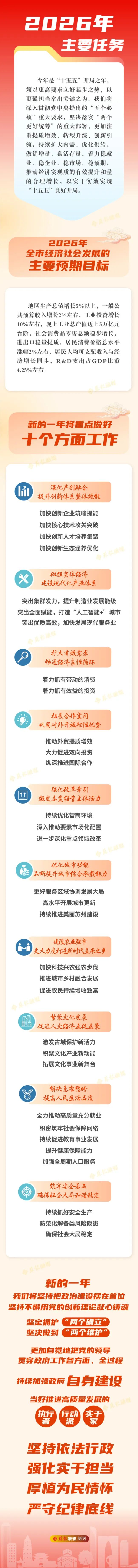 审查和批准苏州市2025年国民经济和社会发展计划执行情况与2026年国民经济和社会发展计划草案的报告,批准苏州市2026年国民经济和社会发展计划;