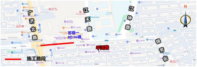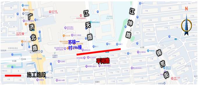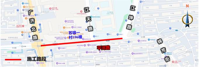 二、自2026年3月4日-2026年5月29日,对平河路(广济北路-苏锦一村196幢)采取半幅封闭的临时管理措施,期间机动车由东向西单向通行,非机动车和行人正常双向通行。