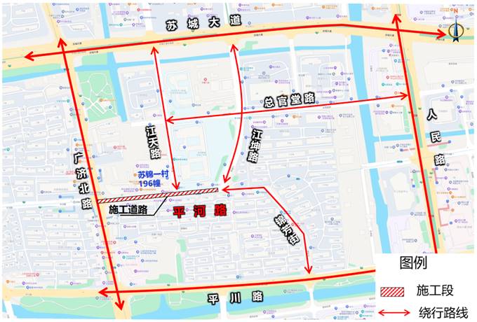 施工期间,过往机动车建议从苏城大道、平川路、总官堂路、苏站路等周边道路绕行。