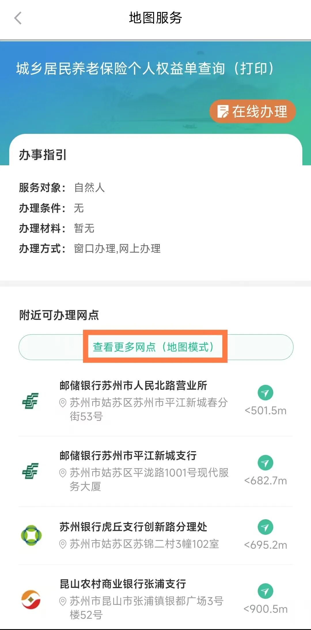 点击“查看更多网点(地图模式)”,即可查看所有“就近办”银行服务网点。