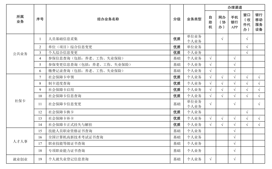 PART2、可在“就近办”银行合作网点办理的人社业务