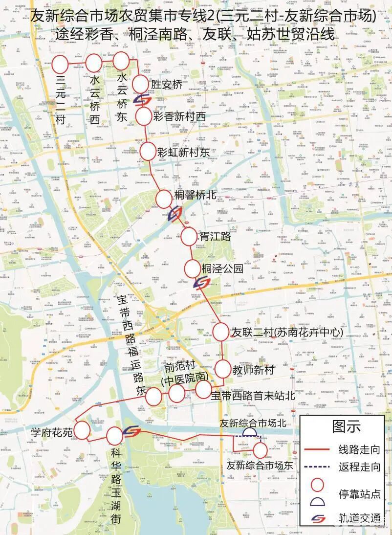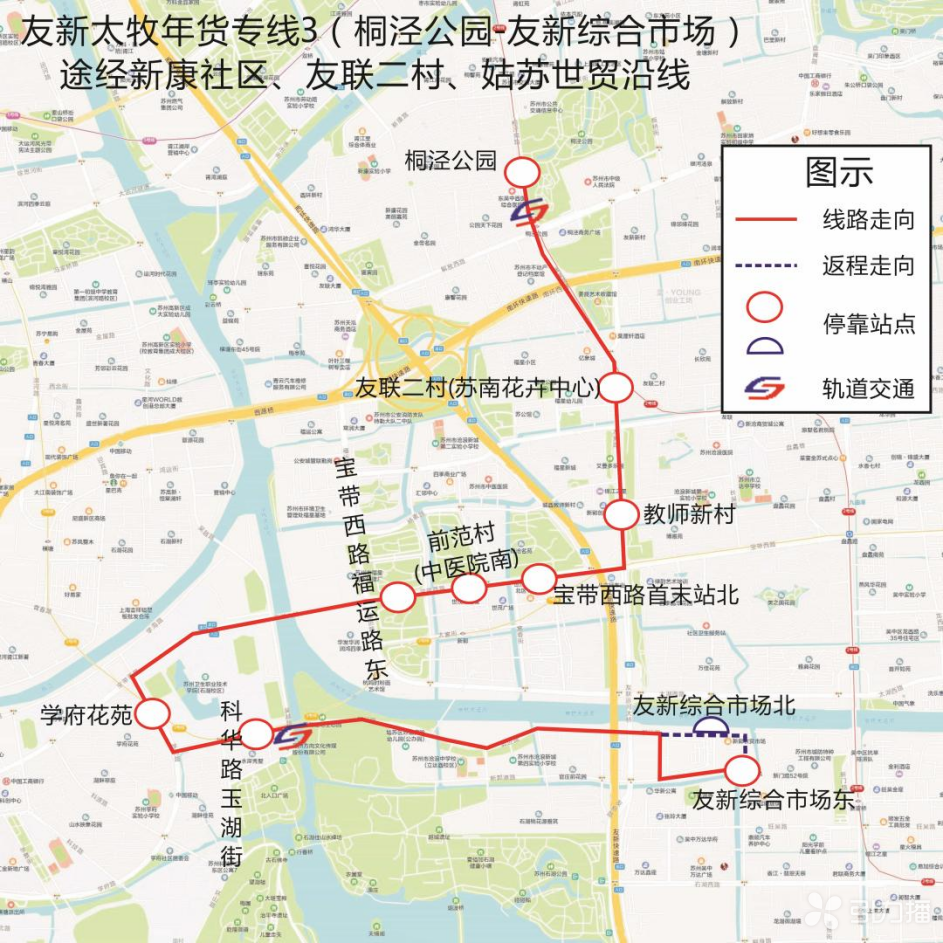 除了南环桥批发市场专线,3条“友新太牧年货专线”也将同步运营,方便市民前往友新综合市场采购。其中,专线1(南环新村-友新综合市场东)和专线2(三元二村-友新综合市场东)运营时间为2月1日至2月15日,专线3(桐泾公园-友新综合市场东)运营时间持续至1月31日。各线路均设置多个班次,满足不同时段出行需求。
