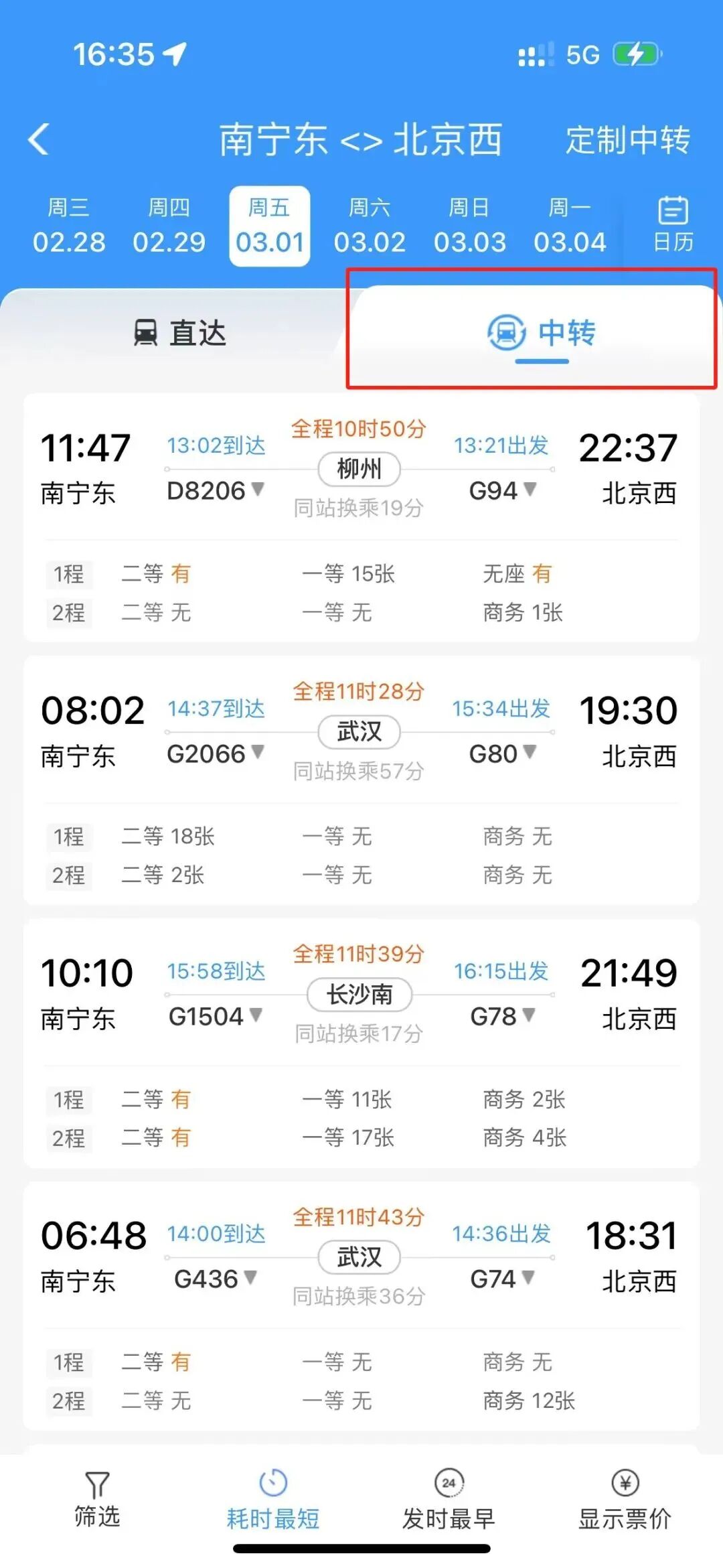 直达票抢不到?尝试分段购票(出发地-中途站+中途站-目的地)。