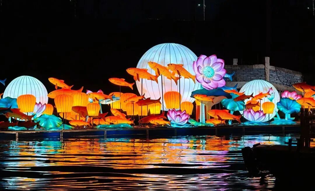 两大点位精心布设主题彩灯,灯光勾勒古建轮廓,映照河街相依的水乡风貌,再现明清时期“万家灯火”的市井繁华。