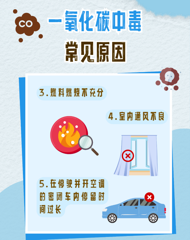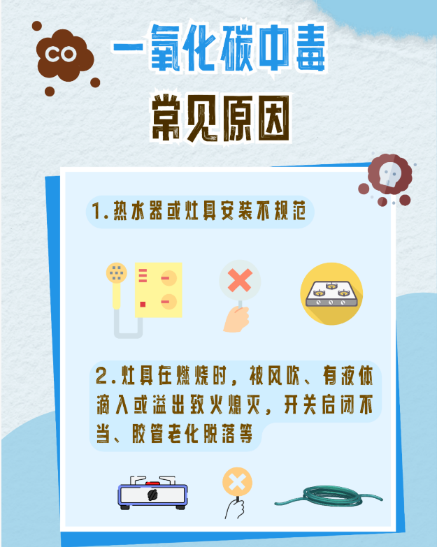 此外,除了注意用气、用火、用电安全,还要谨防一氧化碳中毒。