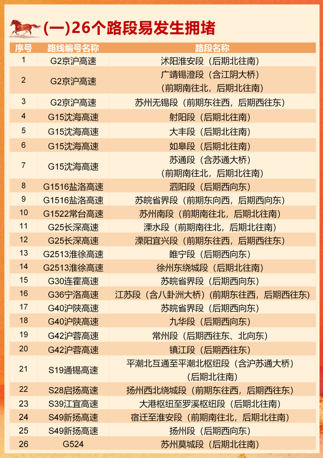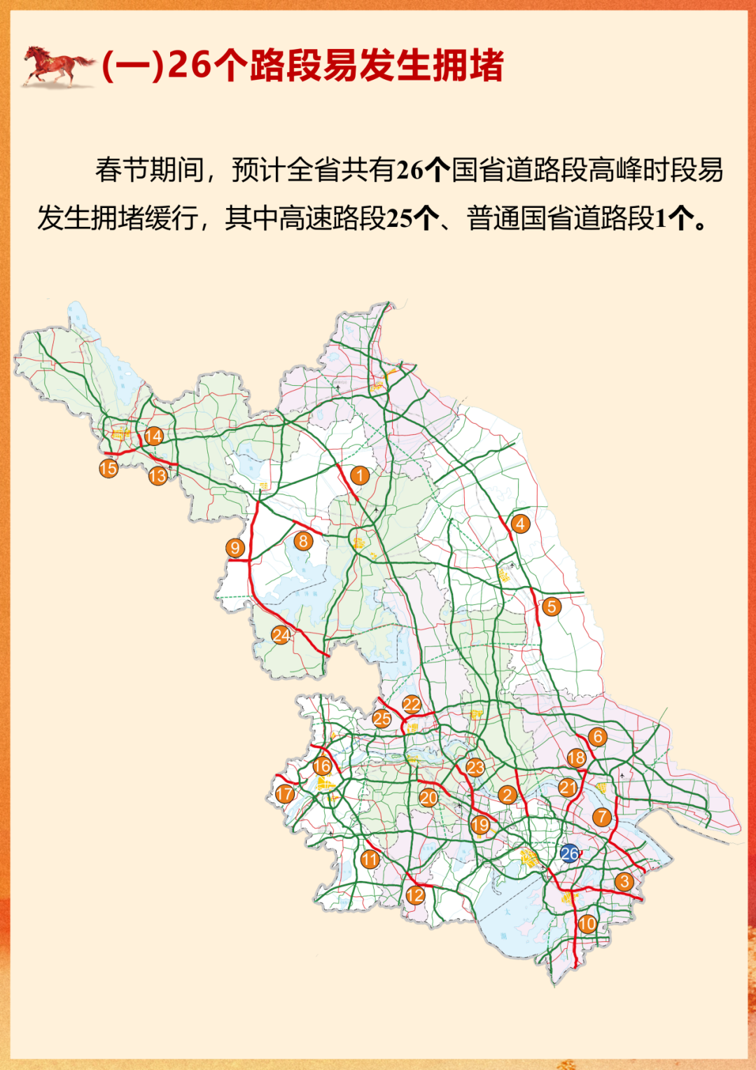 根据江苏省交通运输厅、江苏省公安厅、江苏交通控股有限公司联合发布的《2026年春节江苏国省道路网出行服务指南》: