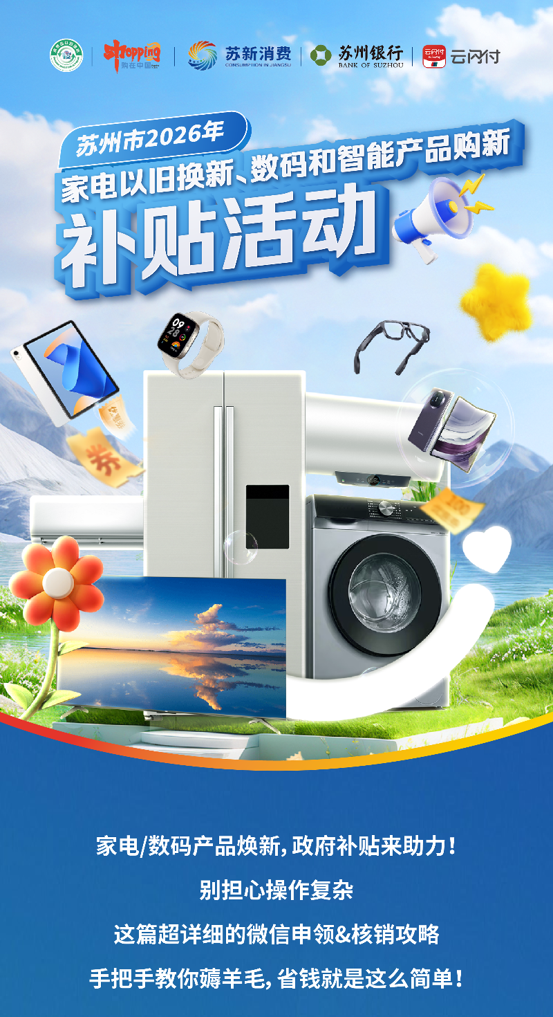 苏州市2026年家电以旧换新、数码和智能产品购新补贴活动