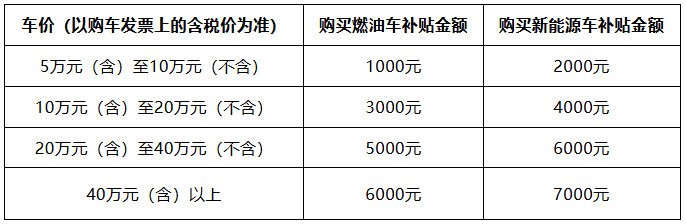 注:1.本次补贴不能与其他各级购车补贴政策(含汽车报废更新补贴政策、汽车置换更新补贴政策等)同时享受。同一辆新车同时符合多个政策,您只能选择申请一种补贴!新能源乘用车需纳入工业和信息化部《减免车辆购置税的新能源汽车车型目录》。