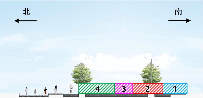 采用“分车道逐段抢修、完工一段恢复一段”模式,分四期施工,施工期间机动车利用剩余机动车道双向通行,非机动车、行人正常通行。