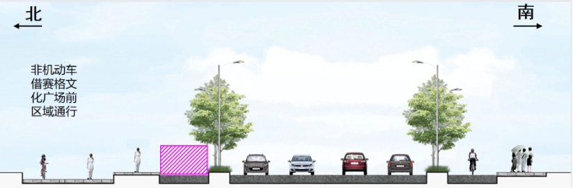 施工长度约60米,全天围挡施工。施工期间占用北侧非机动车道,东向西非机动车临时借用人行道板通行,其他方向机动车、非机动车及行人正常通行。