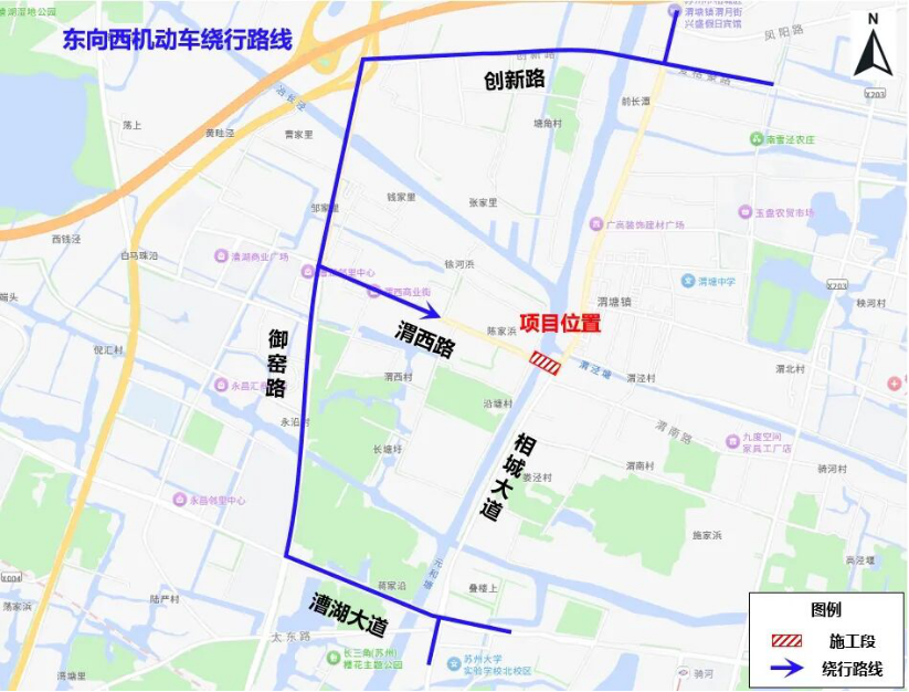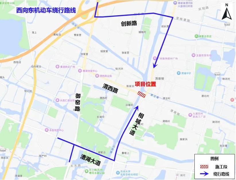 施工期间,机动车可通过漕湖大道、创新路等周边道路绕行。