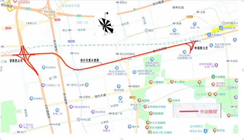施工范围:娄江快速路(玲珑街立交-官渎里立交)双向约18公里道路,施工期间需动态管控双向各一条机动车道。