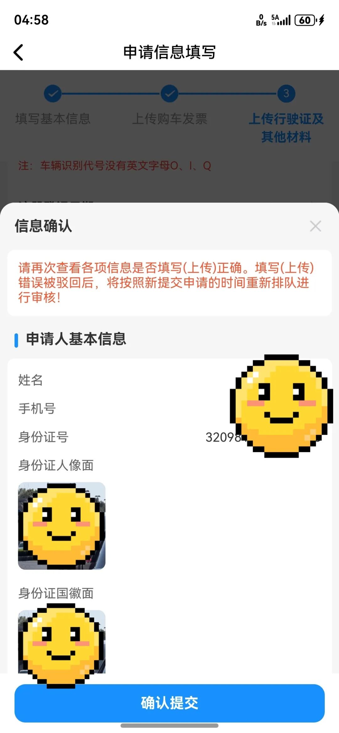 第六步确认以上信息填写无误后提交。