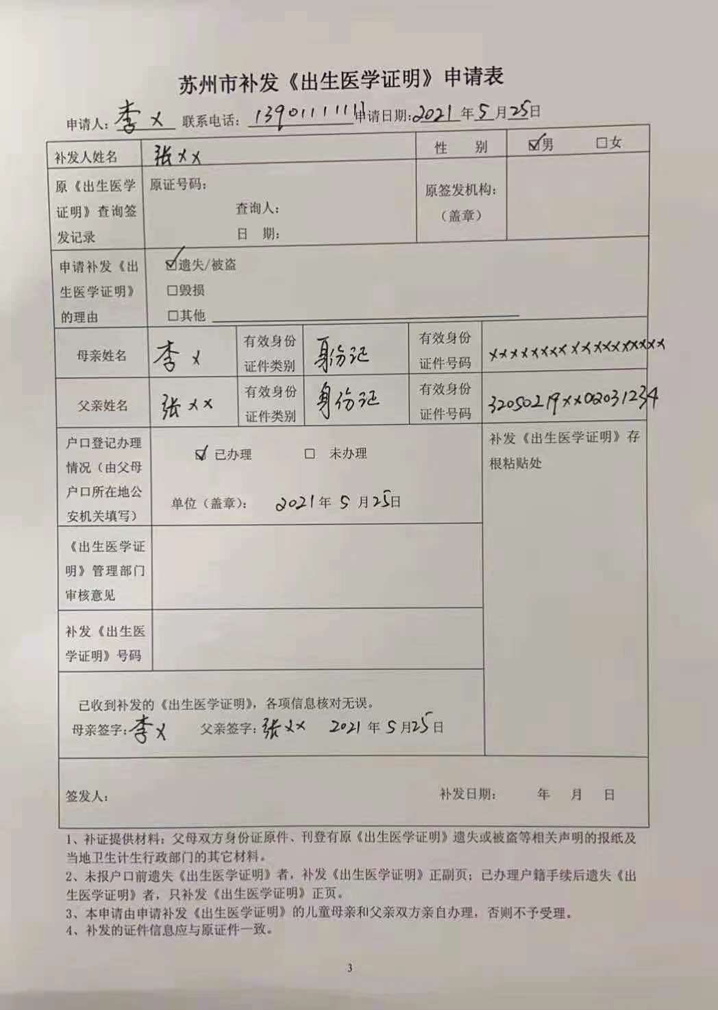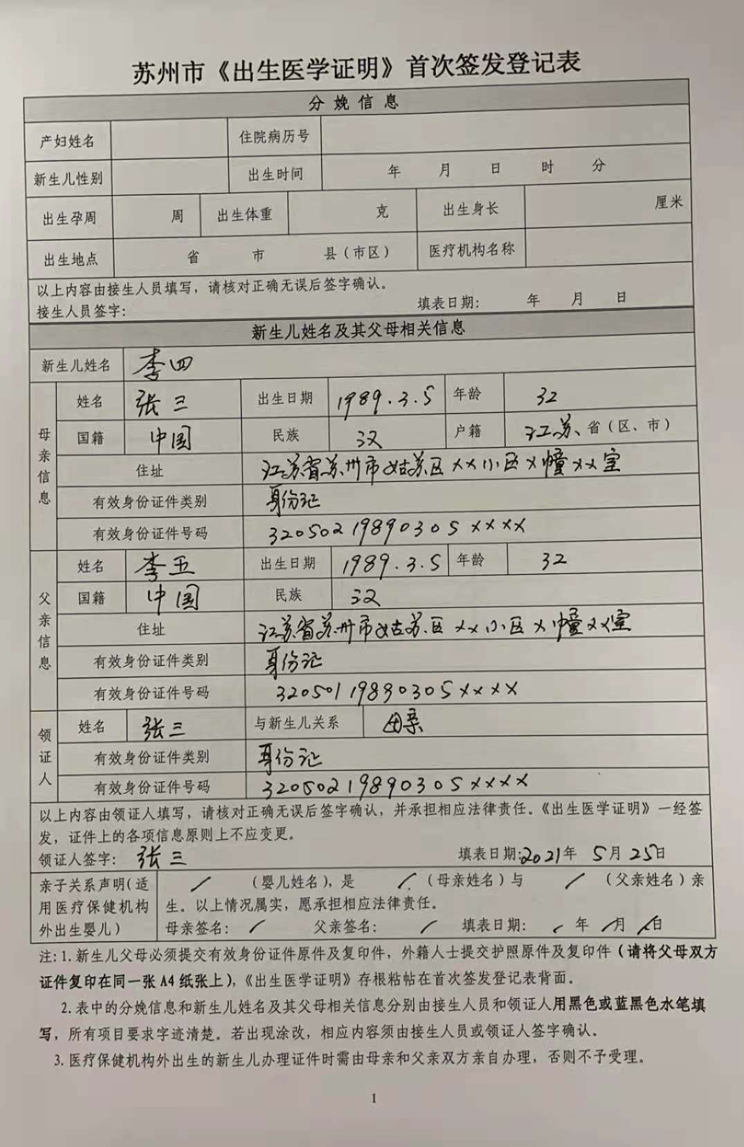 | 申请条件: | 填写《苏州市<出生医学证明>首次签发登记表》 |