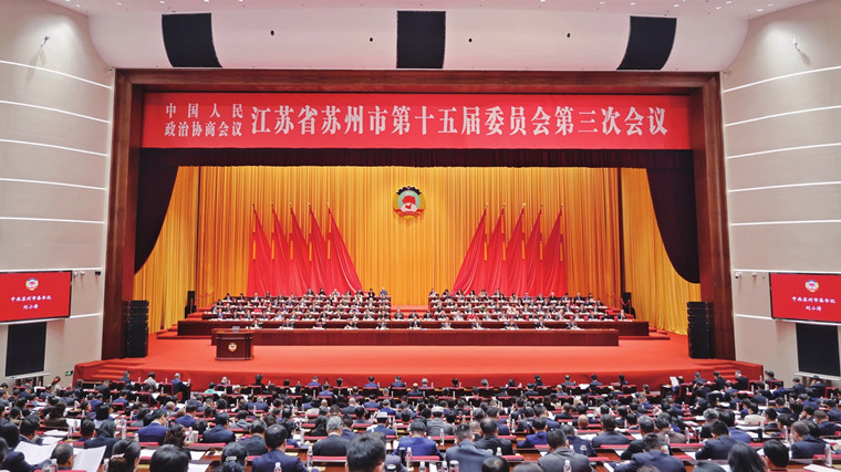 在全市上下深入学习贯彻习近平总书记对江苏、苏州工作重要讲话重要指示精神,奋力谱写“强富美高”新苏州现代化建设新篇章关键时刻,中国人民政治协商会议江苏省苏州市第十五届委员会第三次会议昨天(1月15日)在苏州国际会议酒店开幕。来自全市各界别的政协委员为苏州在中国式现代化走在前、做示范中当好排头兵,建睿智之言,献务实之策。中共苏州市委书记刘小涛到会祝贺并讲话。市政协主席朱民代表市十五届政协常务委员会向大会作工作报告。