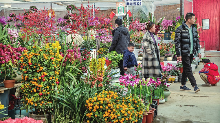 昨天(1月28日),吴中区甪直花卉市场人来人往,格外热闹,市民趁着周日好天气逛花卉市场,买鲜花迎新春。