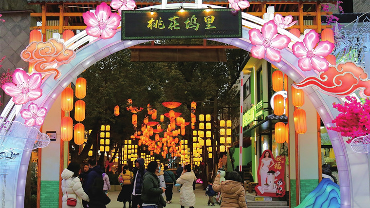 昨天(1月25日),在桃花坞唐寅故居文化片区,“桃花坞里”灯火璀璨,吸引市民、游客前来观灯赏
