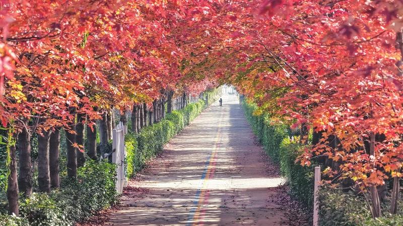 园区阳澄湖半岛浦田有机农场的红枫大道