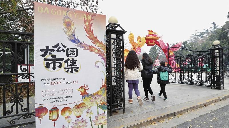 昨天(12月20日),苏州公园内人流如织,市民们漫步于传统花灯装点的步道间,逛创意市集,品尝时令小吃,感受浓厚的节日氛围。