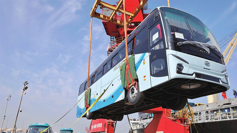 前天(1月8日),在苏州金龙生产基地,3000辆高端客车整装列阵,将跨洋远赴阿尔及利亚。这批总金额超15亿元的出口
