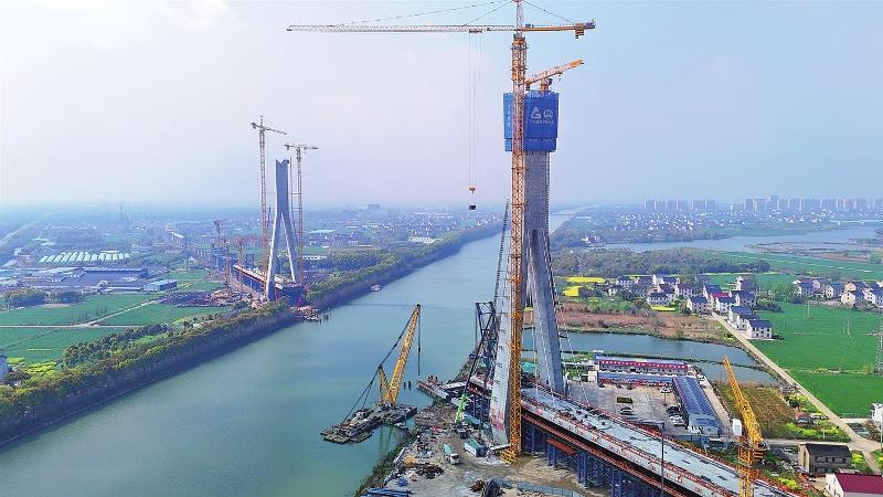 近日,通苏嘉甬铁路全线重点工程望虞河斜拉桥268号主塔顺利封顶,项目全面转入斜拉索挂索与结合梁架设阶段,为全线按期通车筑牢了根基。