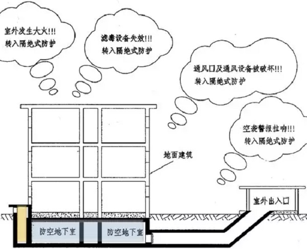 隔绝式防护指的是利用工程本身的防护能力和气密性,防止沾染有毒有害物的空气侵入工程,危及工程内部人员安全的一种人防工程防护方式。